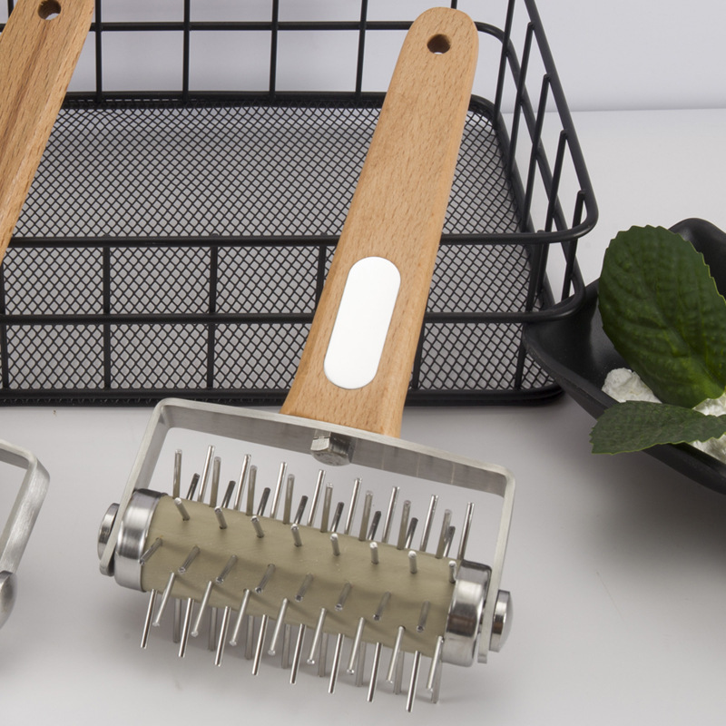 跨境不锈钢披萨打孔器滚轮针举木柄披萨工具 烘焙打孔针面包滚针