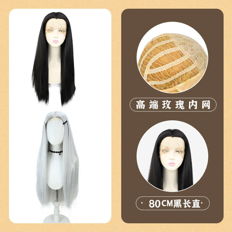 前蕾丝假发美人尖黑色长直发80厘米COS假发手织毛坯假发
