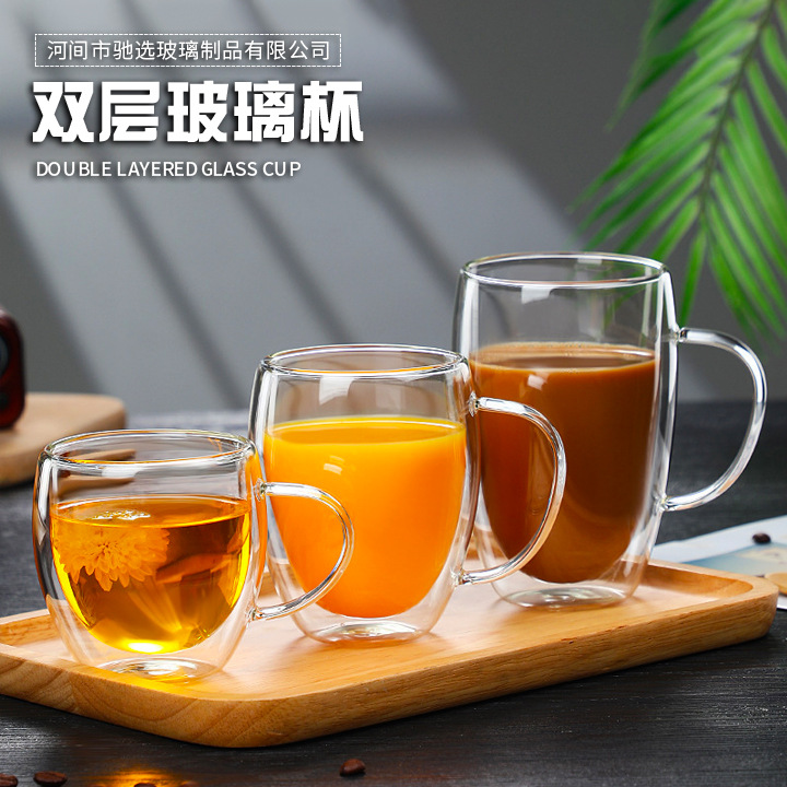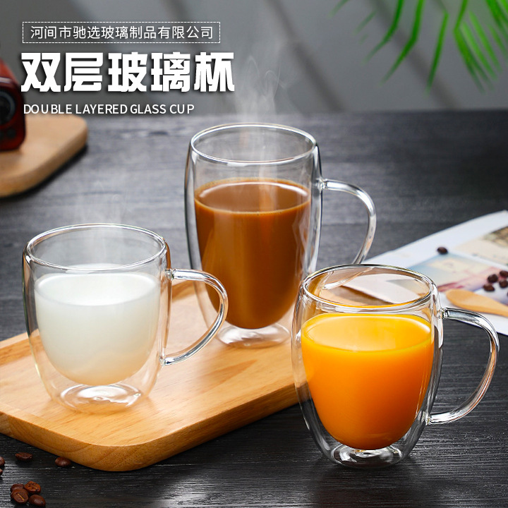 透明玻璃双层杯家用带把手玻璃奶茶咖啡杯子家用隔热泡茶杯带柄