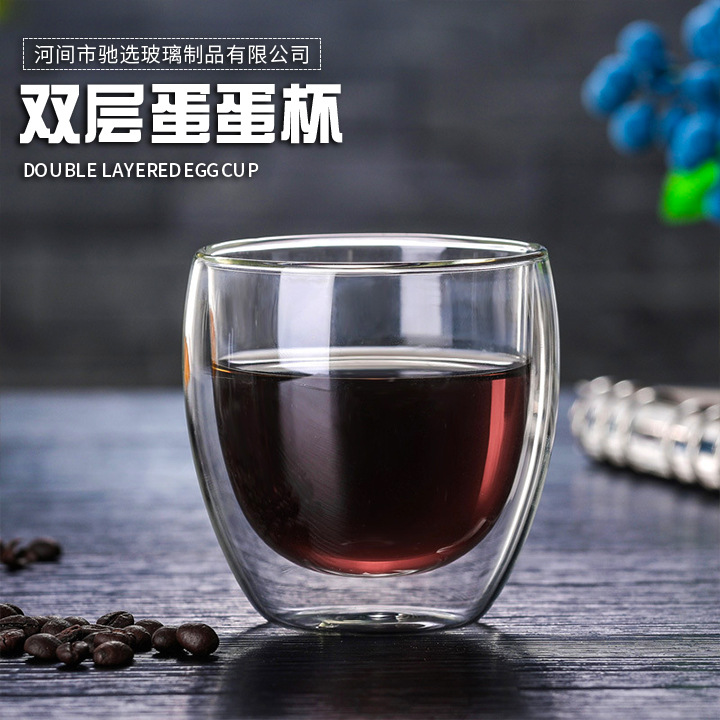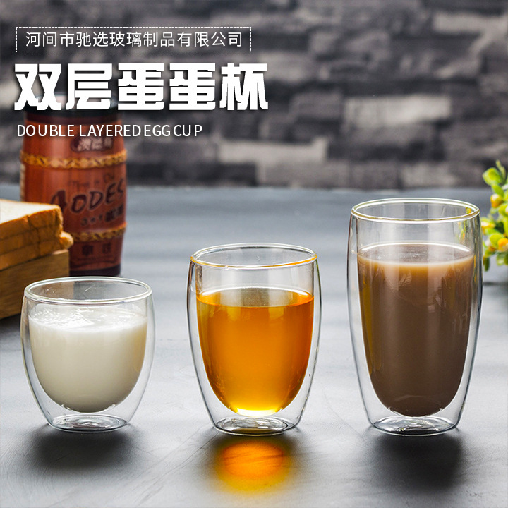 高硼硅耐高温饮料牛奶杯家用蛋形隔热玻璃水杯透明双层玻璃咖啡杯