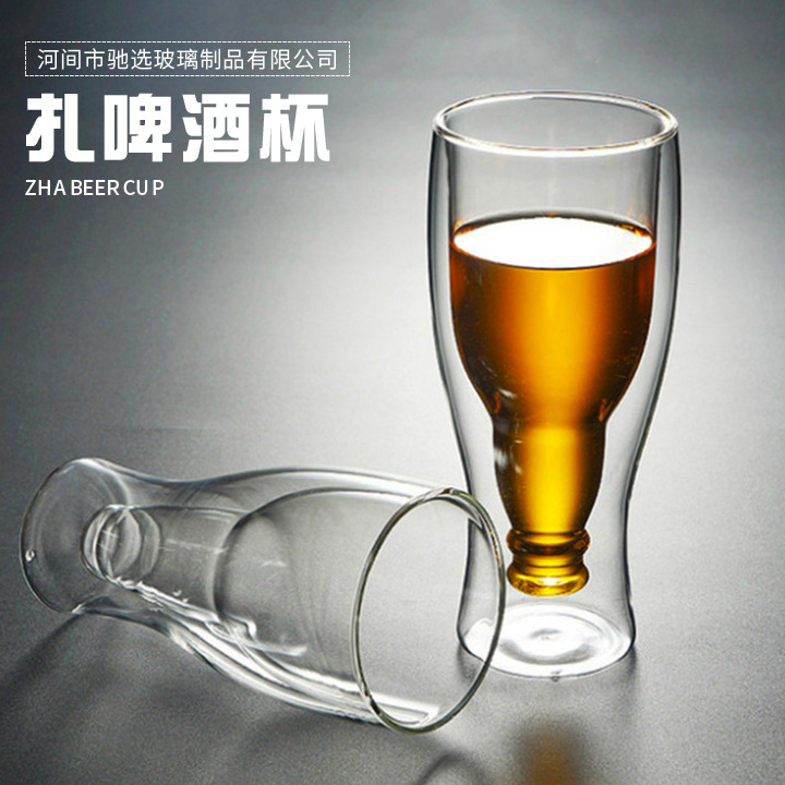 创意翻转扎啤酒杯倒立果汁饮料水杯酒吧餐厅艺术杯透明双层玻璃杯