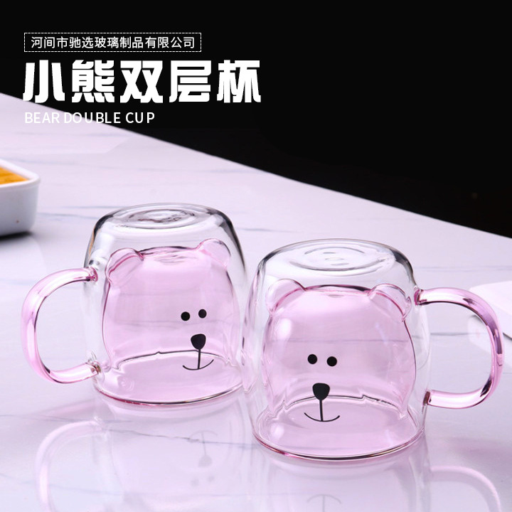 批发带把双层玻璃杯创意玻璃杯可爱造型杯子动物咖啡杯卡通小熊杯