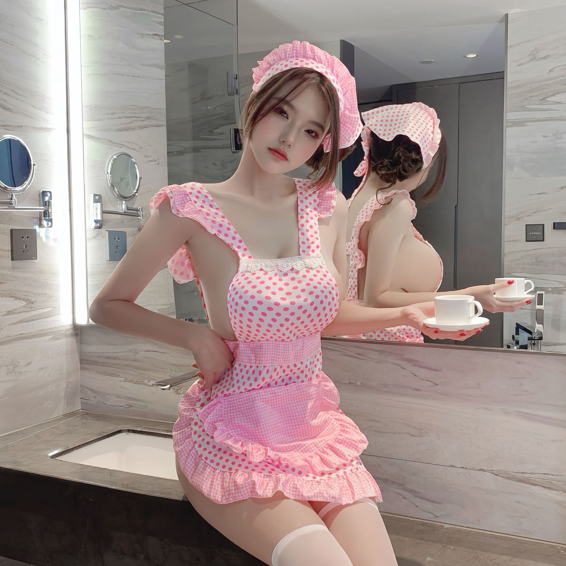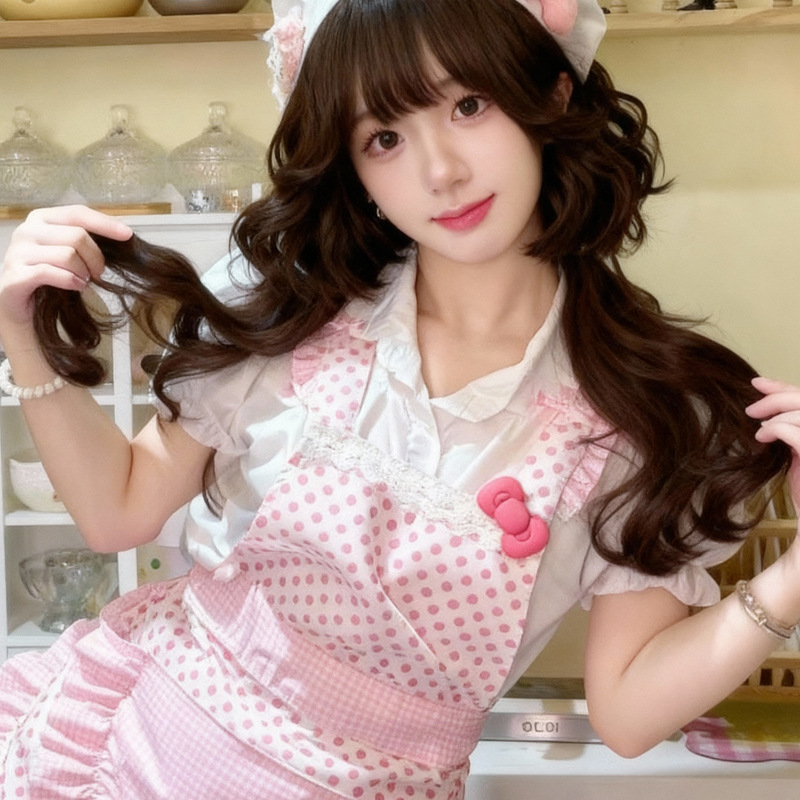 粉色厨娘自制波点围裙可爱lolita衬衫软萌宅系doll感女仆装