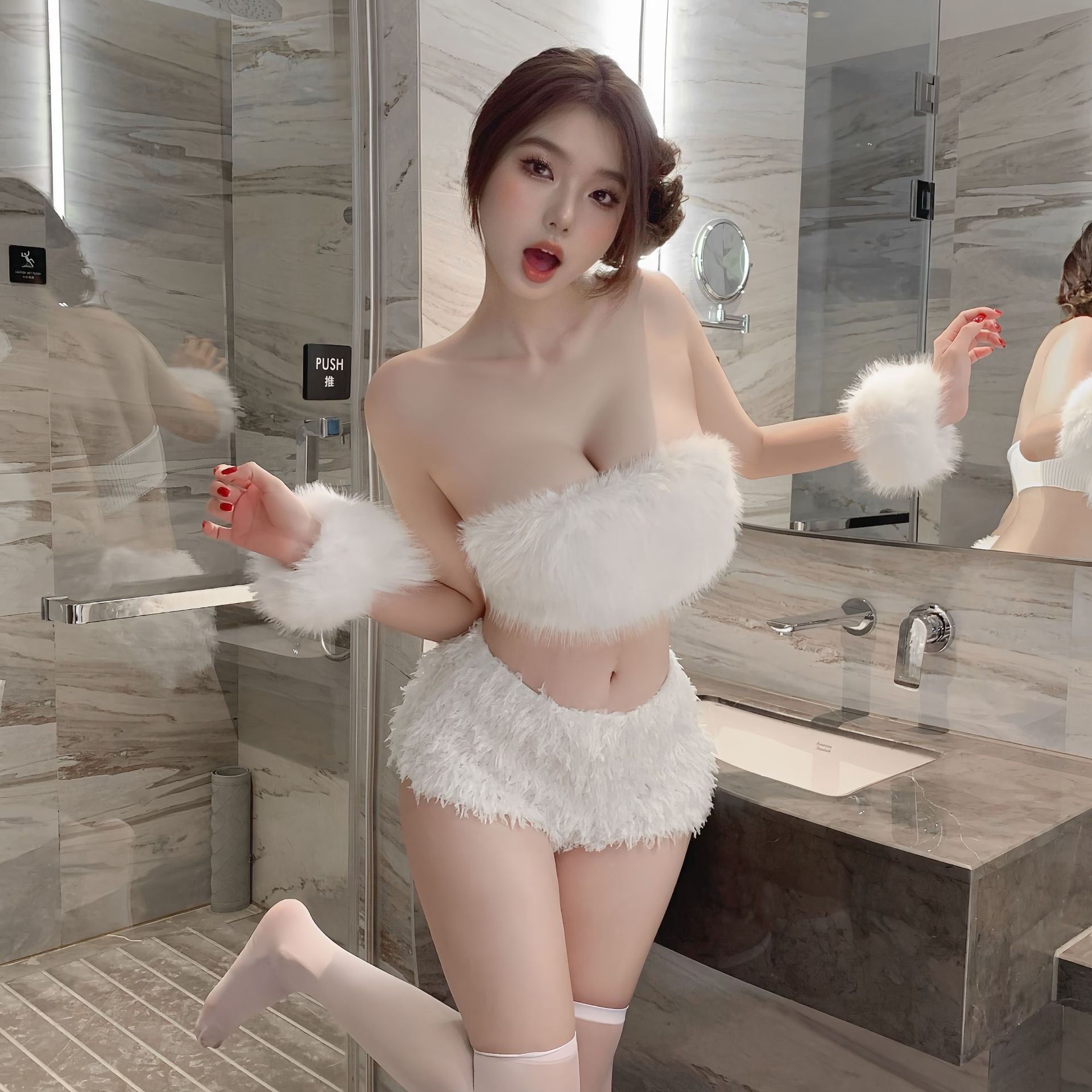 大胸抹胸毛绒纯欲风直播演出套装毛毛短裙夜店酒吧性感出片跳舞