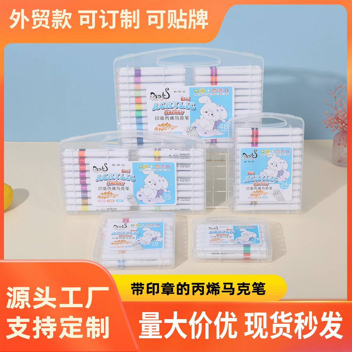 印章丙烯马克笔12/24/36/48色防水不透色可叠色学生彩笔绘画套装