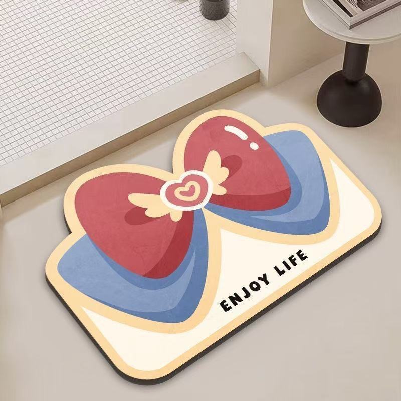 少女蝴蝶结地垫家用可爱浴室吸水地垫厂家易打理硅藻泥门口地垫