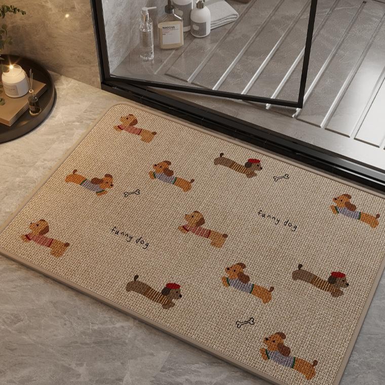 可爱卡通地垫萌犬浴室门口吸水脚垫厂家供应室内易打理亚麻吸水垫