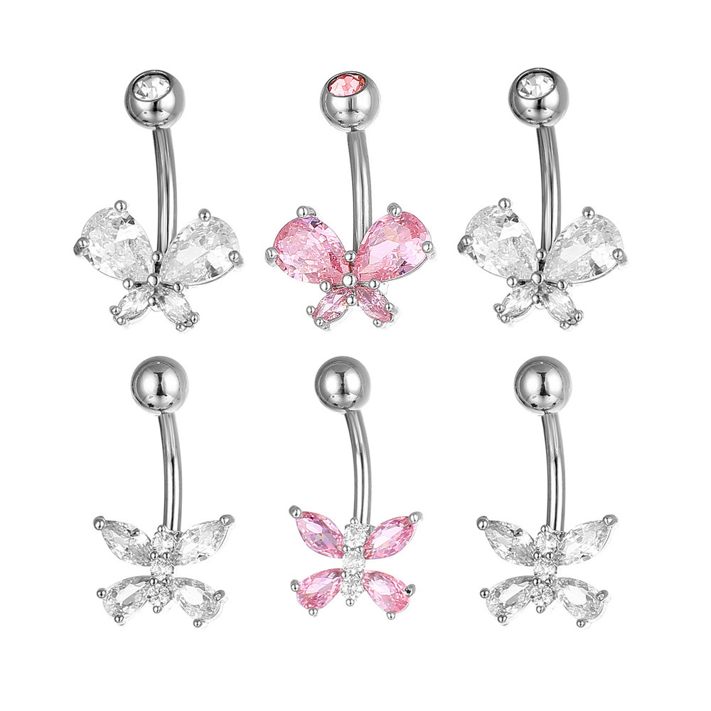 跨境穿刺饰品欧美蝴蝶镶锆石脐钉不锈钢氧化锆肚脐环节日礼物