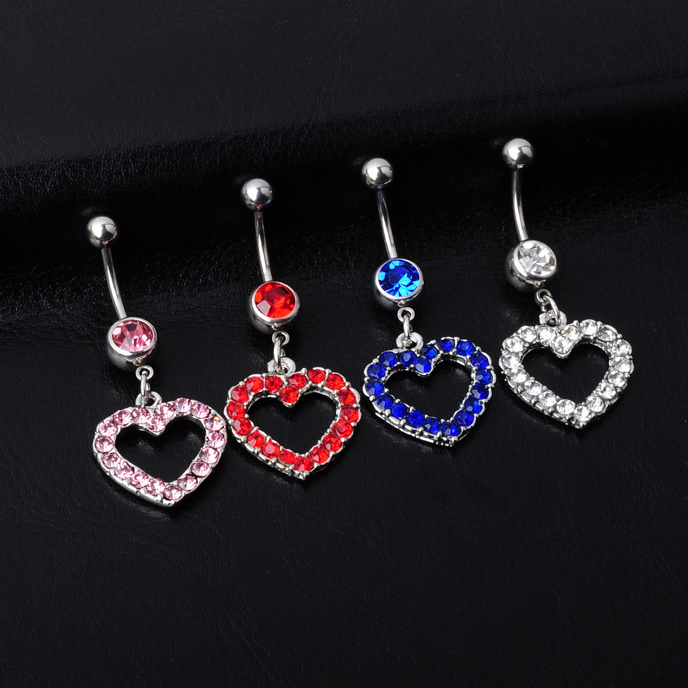 跨境电商热销亚马逊欧美现货批发时尚心形镶钻人体穿刺饰品肚脐环