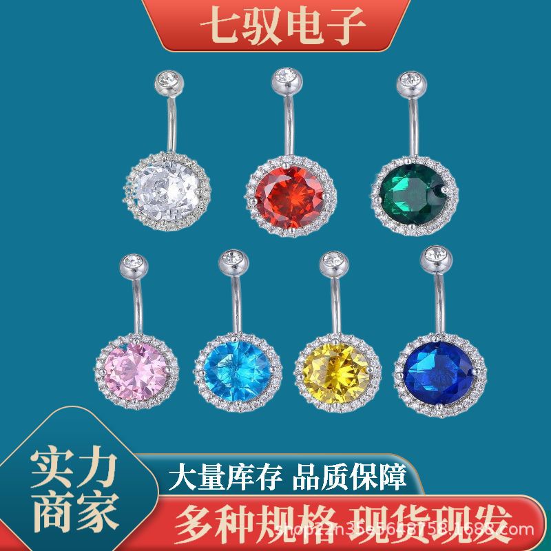 跨境新款欧美穿刺饰品个性创意肚脐环热销圆形彩色锆石双钻肚脐钉