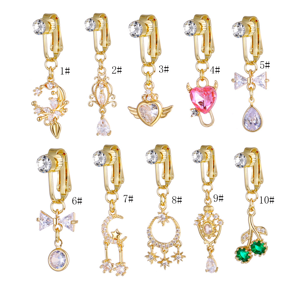 跨境产品亚马逊新款镶锆石吊坠免穿孔假肚脐环肚脐钉饰品耳饰耳夹