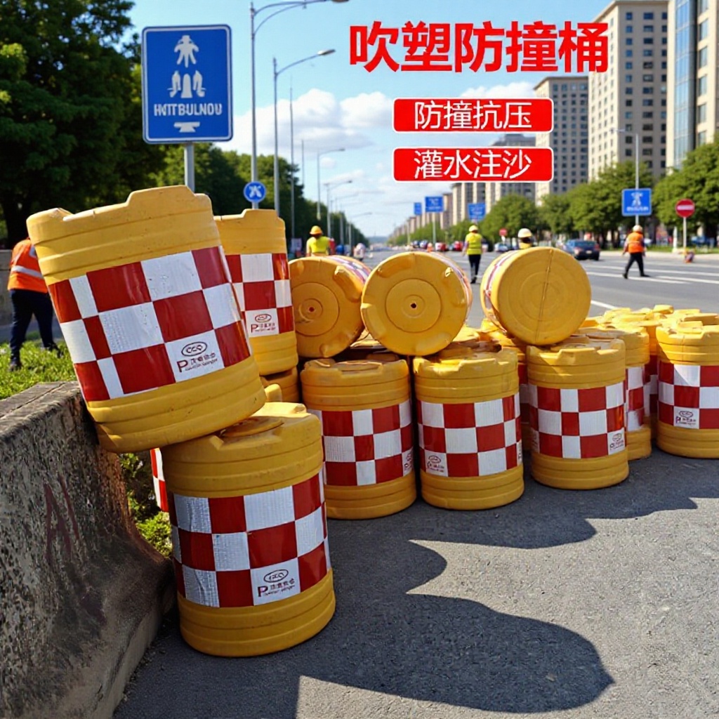 800*600吹塑防撞防护桶现货红白格子注水灌沙圆桶移动水马安全