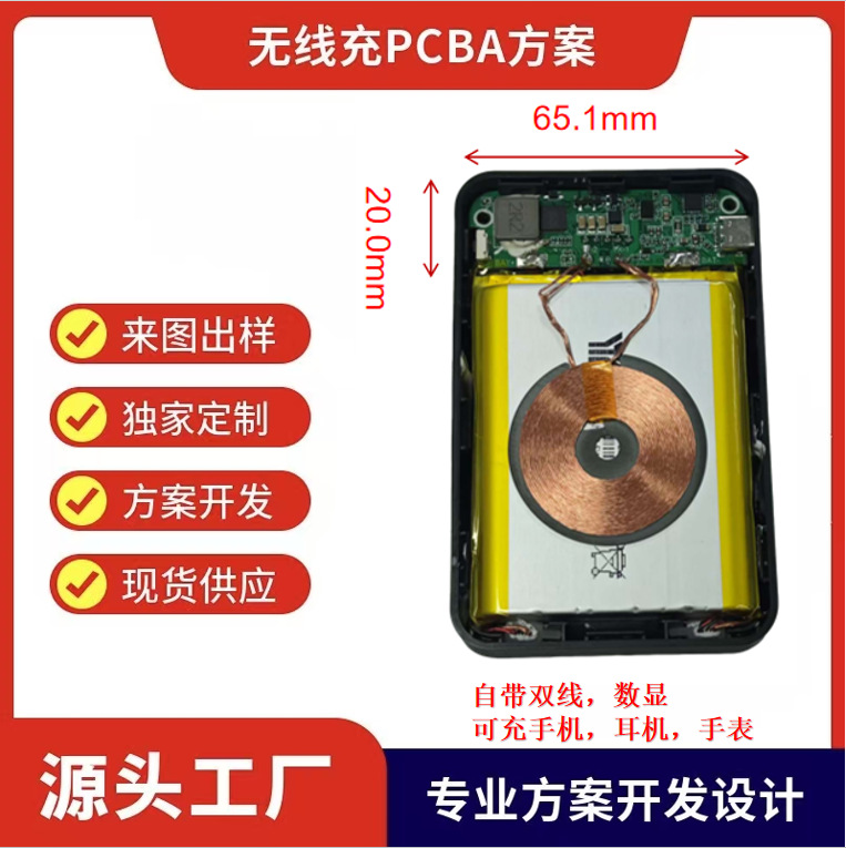 移动电源15w带数显双线无线充可过3c认证充电宝pcba方案定制