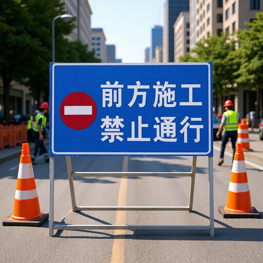 珠三角交通安全指示牌施工警示标识牌道路前方施工禁止通行施工牌