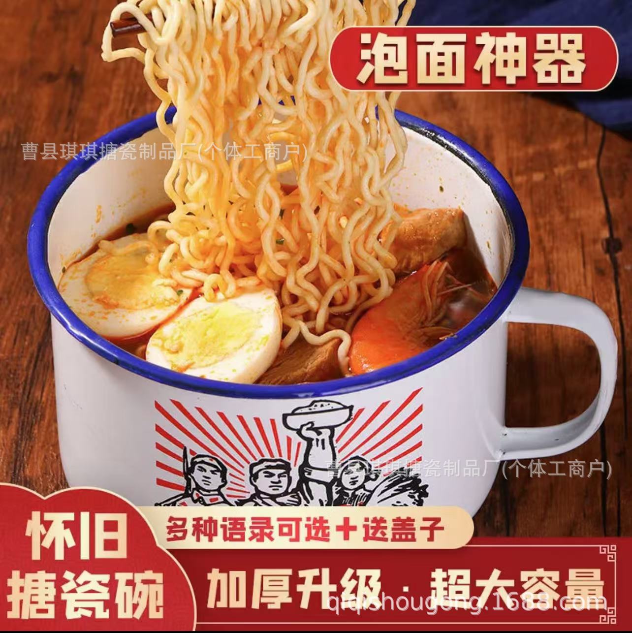 老式复古搪瓷泡面碗学生宿舍快餐杯泡面杯大容量家用饭碗搪瓷碗