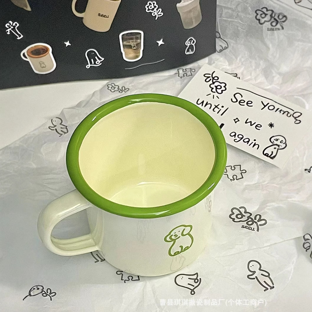热销欧美珐琅搪瓷杯亚马逊高颜值马克杯户外露营咖啡杯图案卡通杯