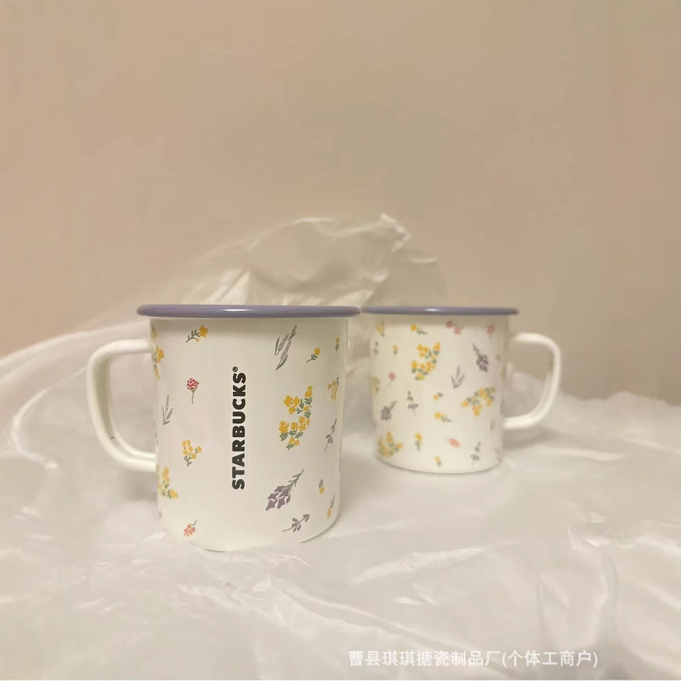 跨境紫色碎花搪瓷杯网红小清新马克杯情侣咖啡杯下午茶彩色珐琅杯