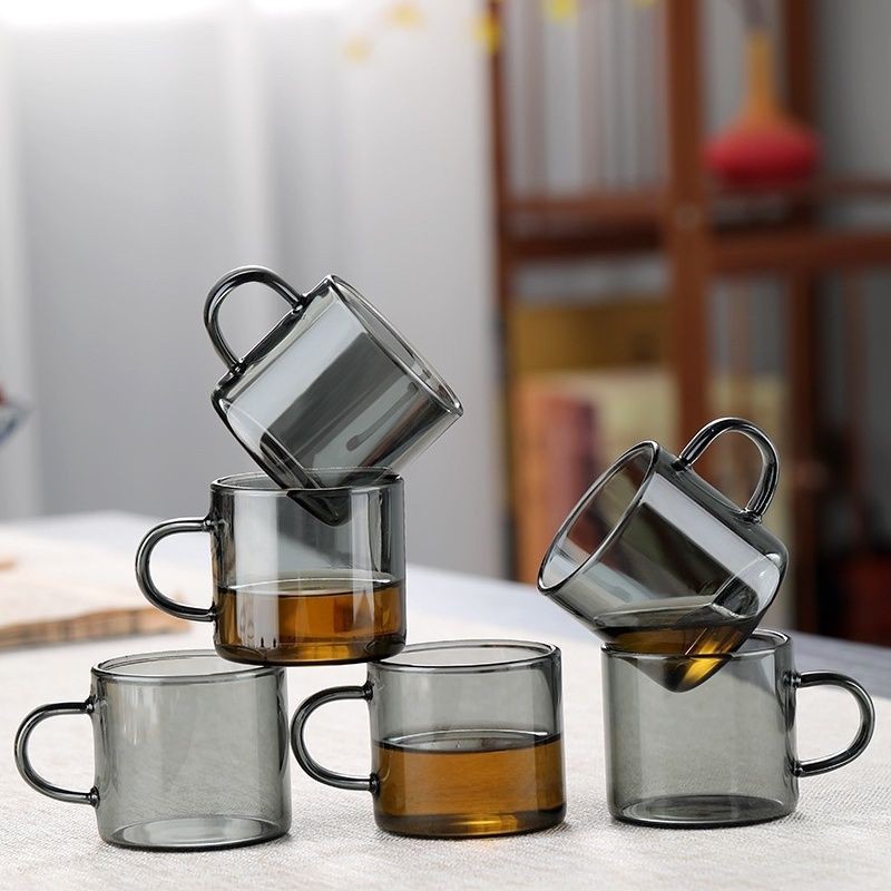 玻璃小茶杯轻奢烟灰色小杯子茶碗家用耐热功夫茶具茶杯套装品茗杯