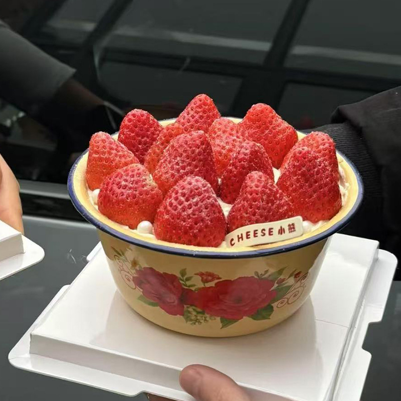 网红同款水果蛋糕装饰大红花搪瓷盆复古趣味生日烘焙甜品装扮配件