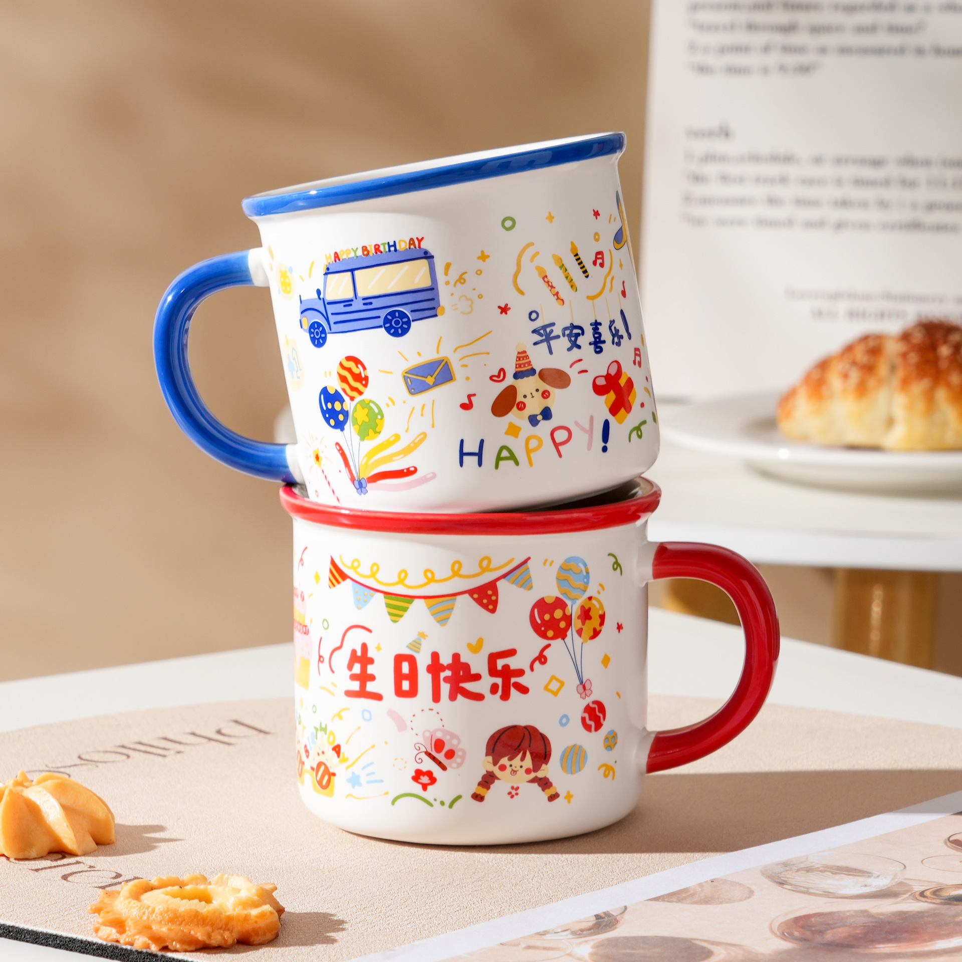 宝宝满月百日宴儿童生日快乐ins高颜值马克杯陶瓷水杯伴手礼批发