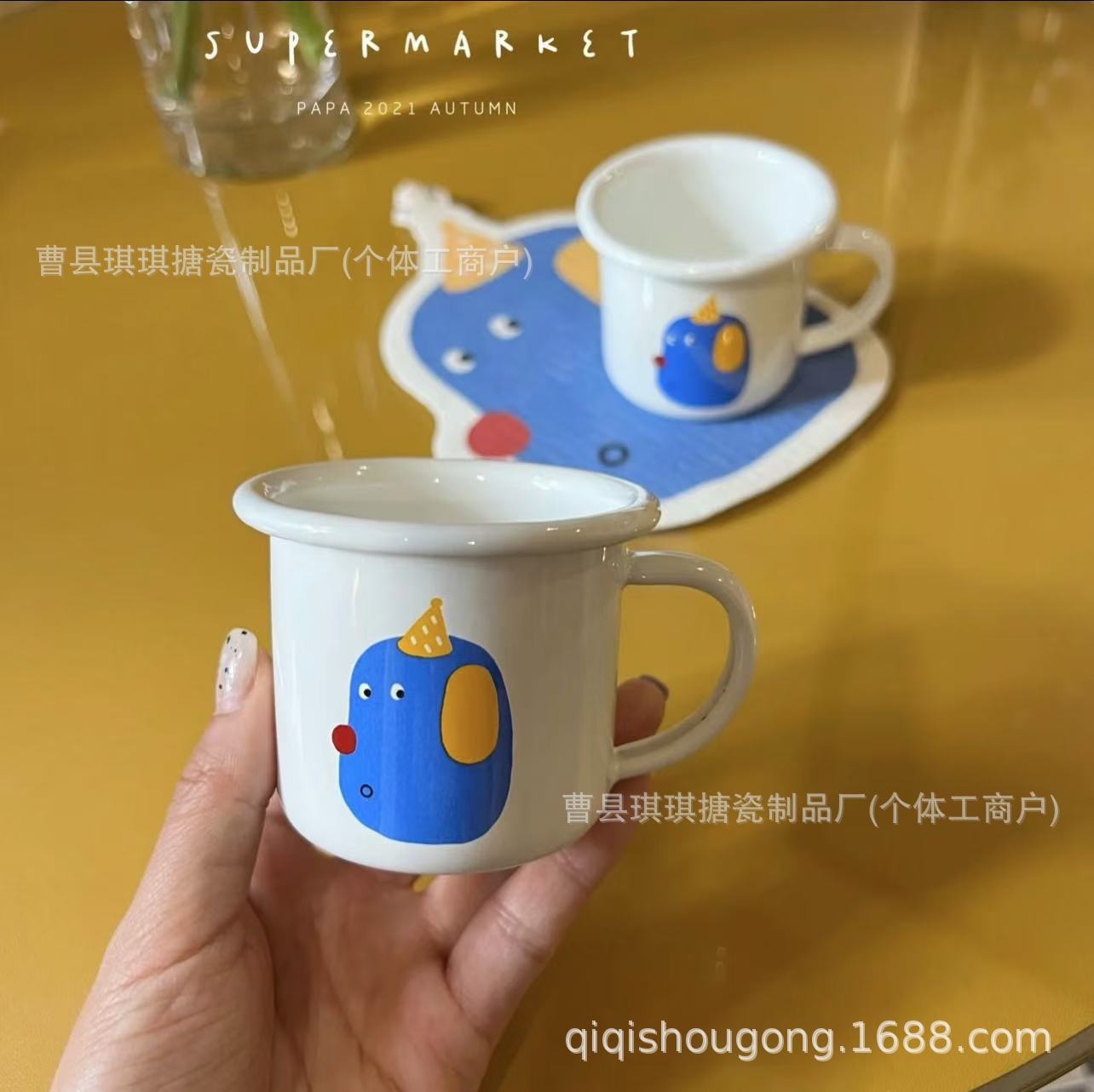 出口小狗卡通牛奶杯卡通可爱家用珐琅杯批发牛奶咖啡燕麦搪瓷杯