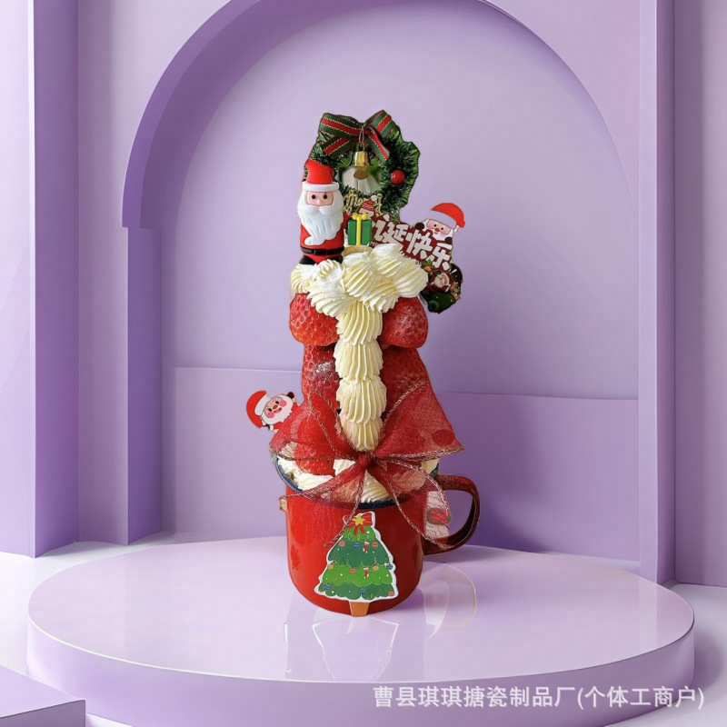 跨境圣诞节专用杯子便携马克杯子批发全红圣诞节搪瓷杯子珐琅杯