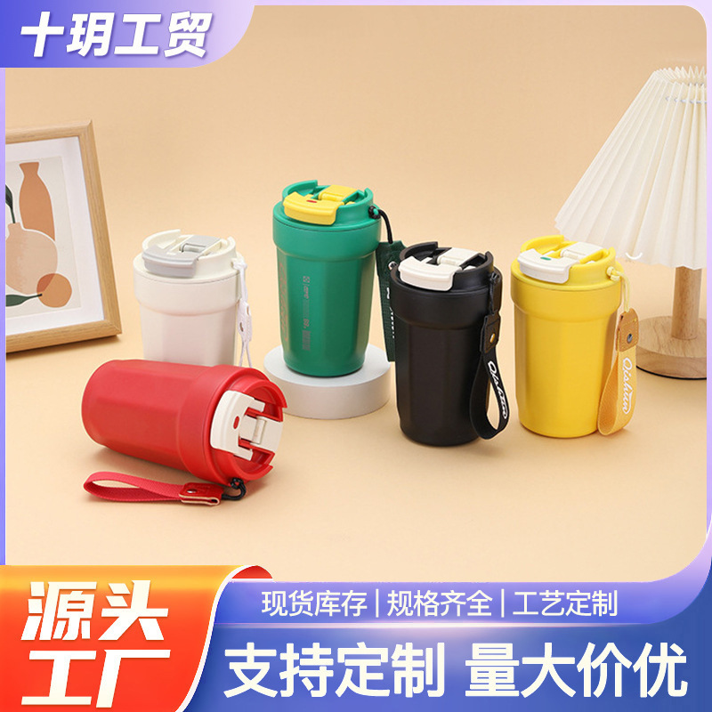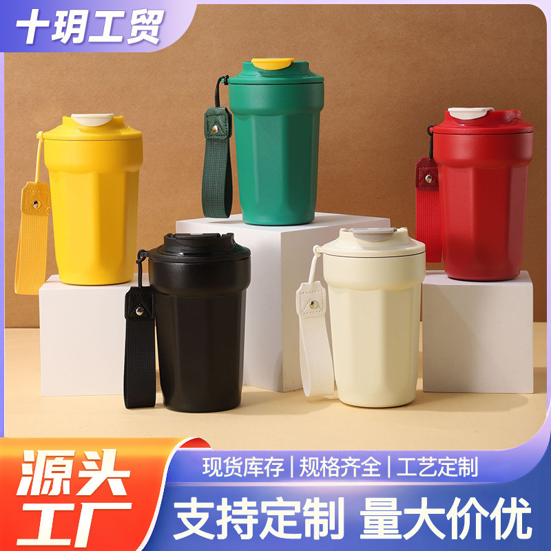 跨境简约304不锈钢保温杯手提便携咖啡杯双层真空原宿ins风元素杯