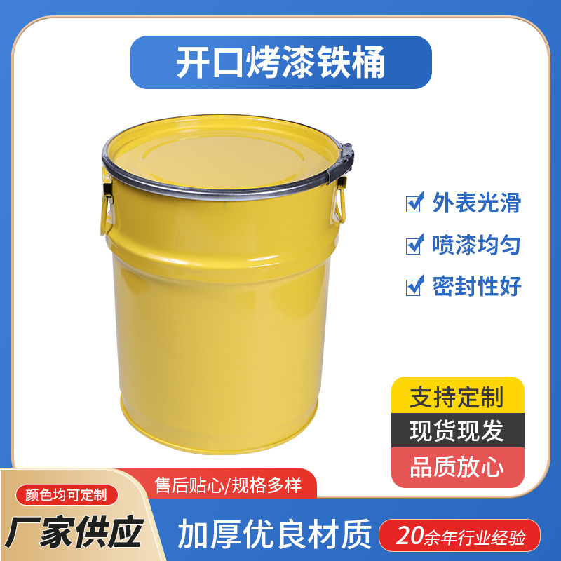 小型开口烤漆铁桶现货供应 工厂用油墨胶水专用容器桶尺寸可定