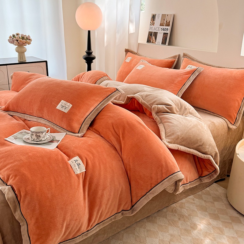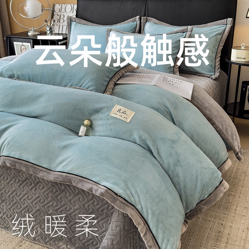 高档高级冬季良品牛奶绒四件套加厚床单被套珊瑚绒美拉德床笠四件