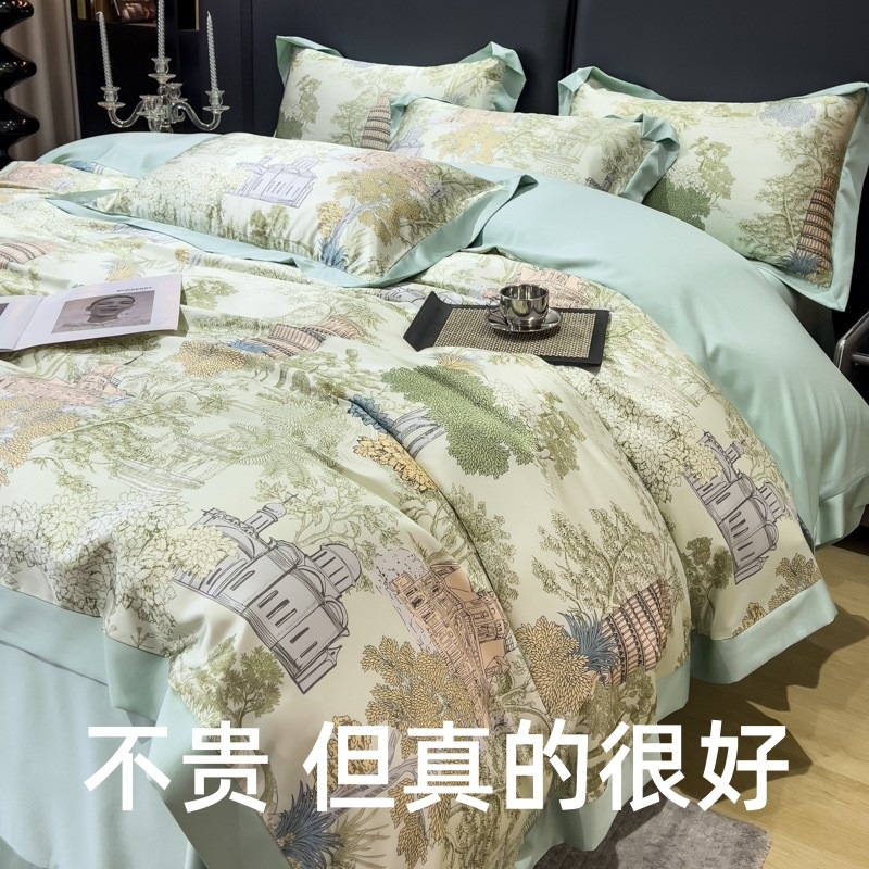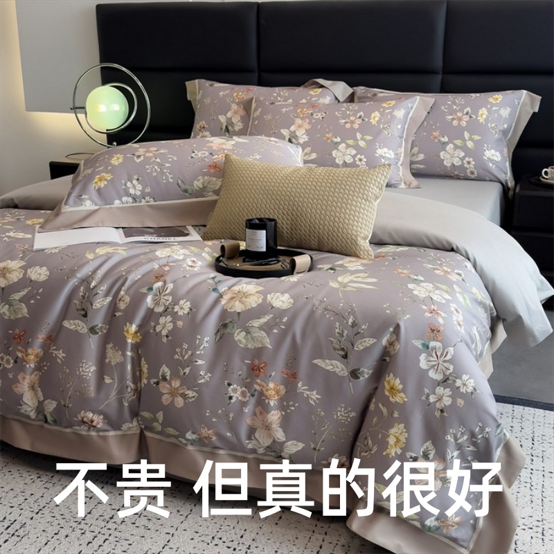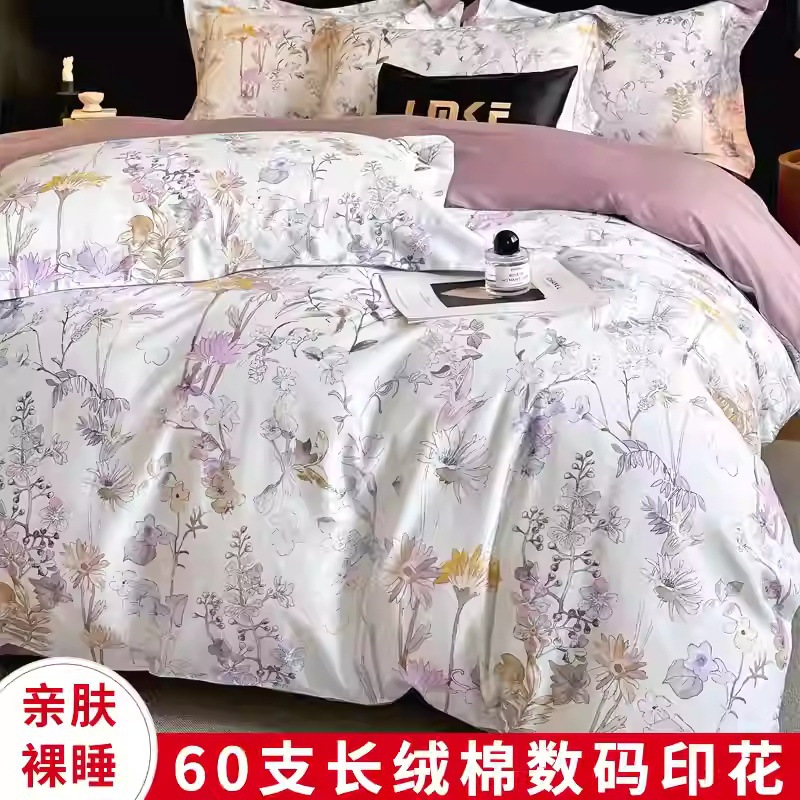 高端贡缎100S长绒棉四件套双人数码印花全纯棉床单四件套丝滑裸睡