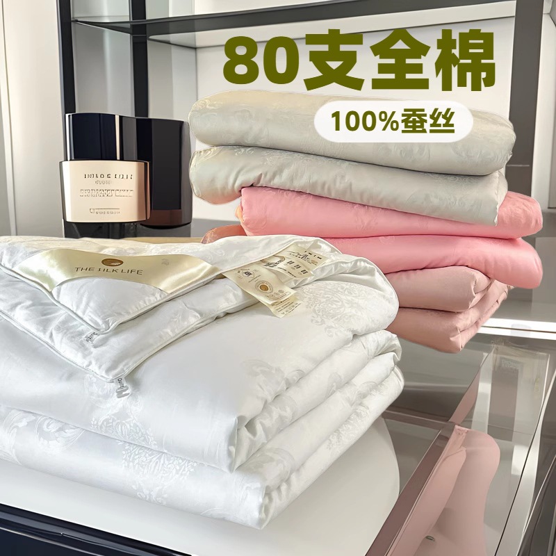 高档80支贡缎刺绣镂空百分百桑蚕丝被芯子公司礼品蚕丝被冬被婚庆