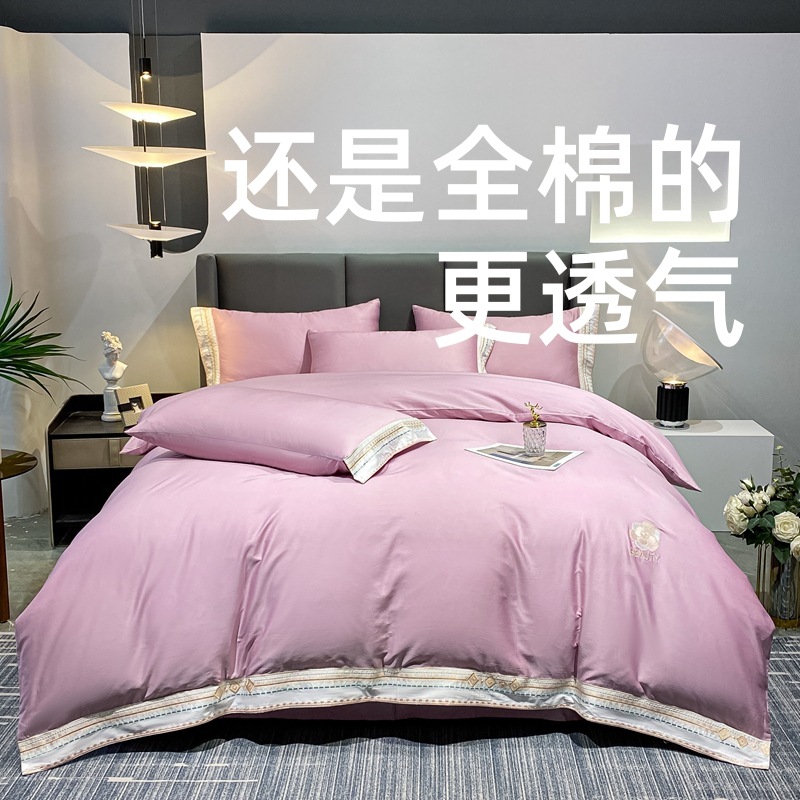 欧式高级感纯色全棉长绒棉四件套轻奢风简约纯棉亲肤裸睡床上用品