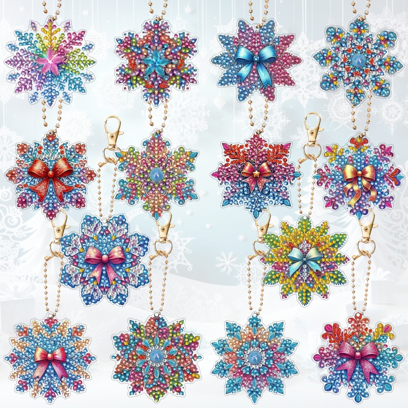 钻石画2025跨境热销5D DIY满钻挂饰亚克力贴钻雪花装饰手工钥匙扣