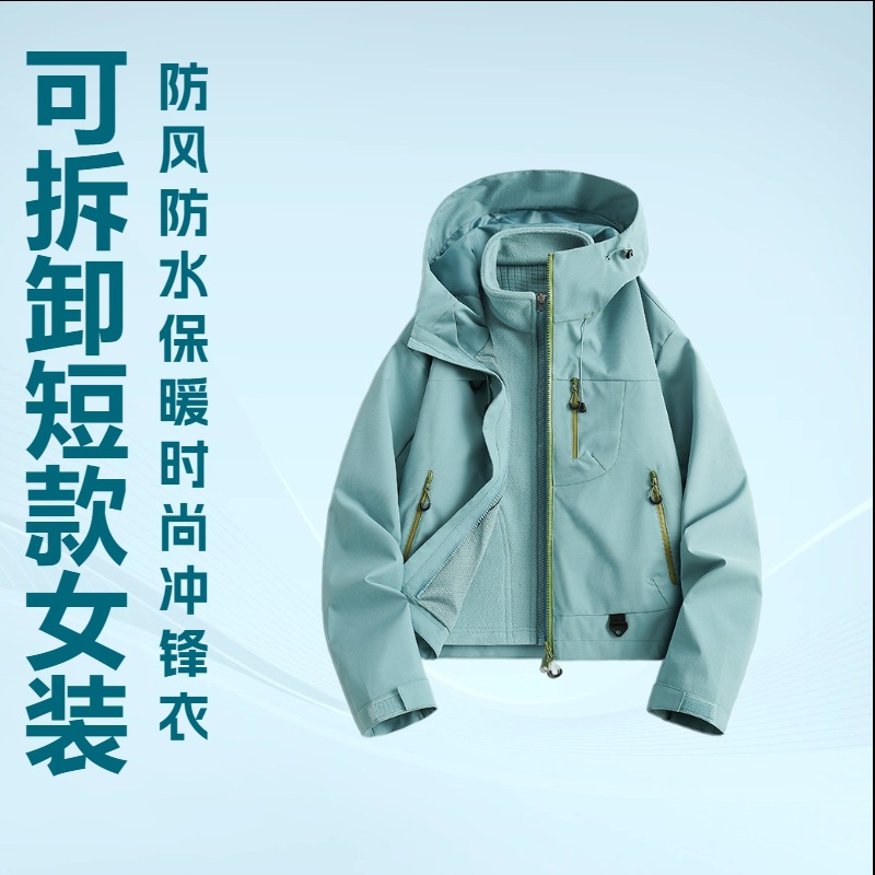 女短款冲锋衣三合一时尚保暖工作服定制印绣LOGO户外工装夹克外套