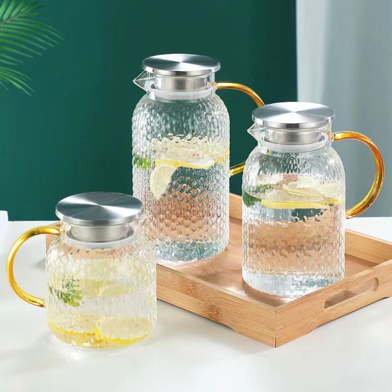 日式凉水壶家用耐高温玻璃套装锤纹米粒壶夏季大容量防爆泡茶壶