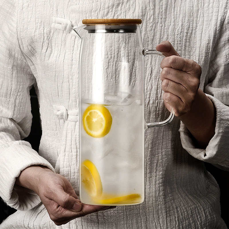 北欧四季壶大容量玻璃凉水壶竹盖包钢盖玻璃壶高硼硅玻璃冷水壶