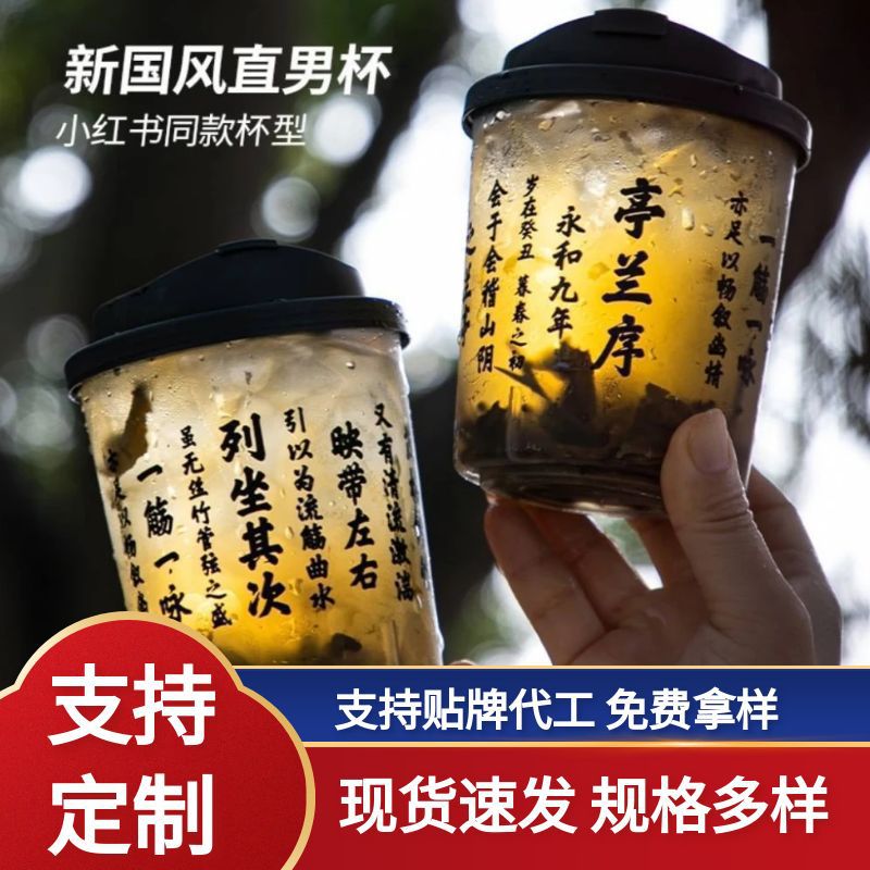 兰亭序一次性直男杯一次性奶茶杯注塑500ml冷饮杯国潮风咖啡杯