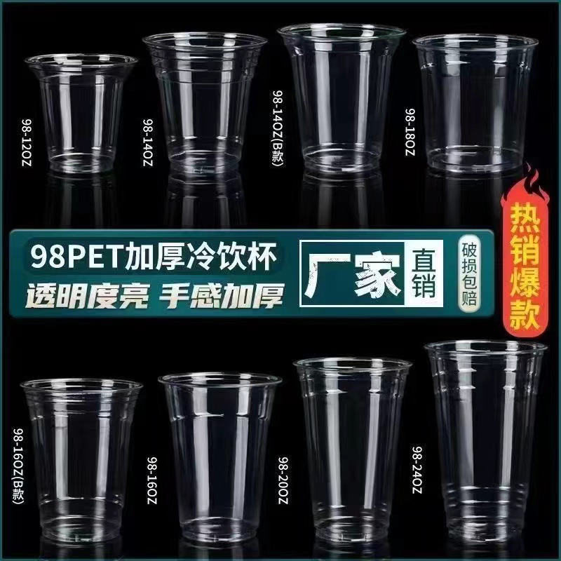 98口径一次性奶茶杯带盖杯奶茶店胖胖杯pet咖啡杯圆形果汁杯批发