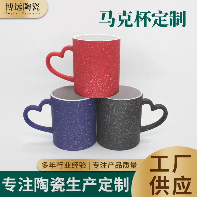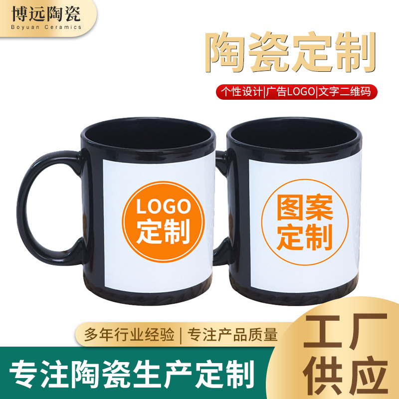 定制LOGO陶瓷马克杯图案创意杯子咖啡杯白色涂层变色水杯定做广告