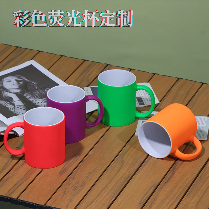 工厂定制彩色荧光杯大容量水杯彩色马克杯简约酒店广告伴手礼杯子