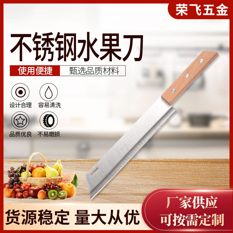 大号不锈钢木柄长款水果刀 家用厨房水果刀具哈密瓜西瓜切刀批发