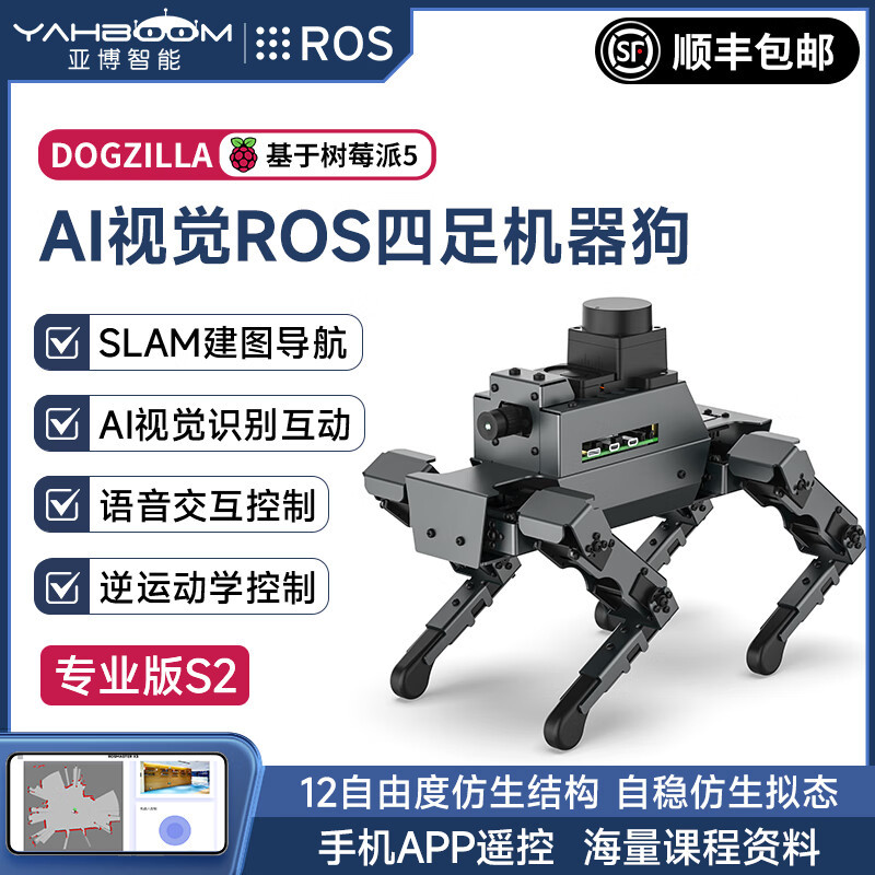 亚博智能(YahBoom)树莓派5四足机器狗12自由度仿生ROS2机器人脸