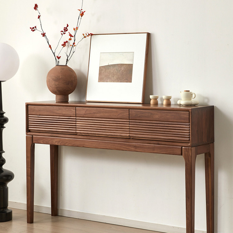 北美黑胡桃木玄关桌 北欧实木玄关柜现代简约靠墙门厅高脚储物柜