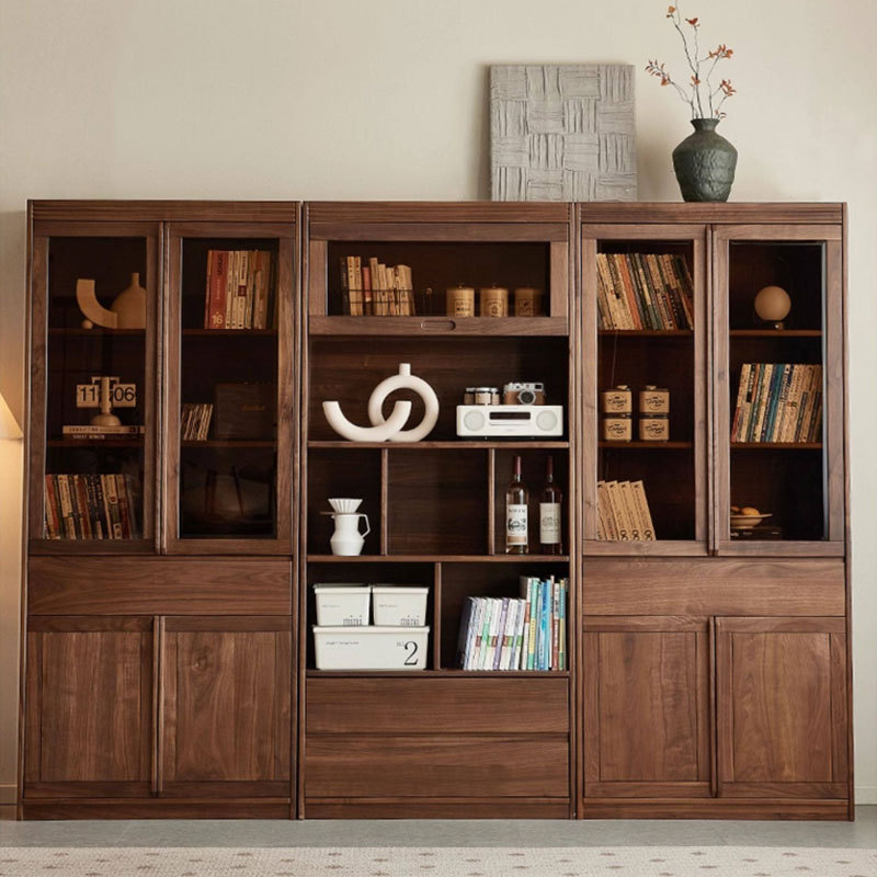 北美黑胡桃木书柜北欧简约客厅实木组合柜现代多动能玻璃展示架