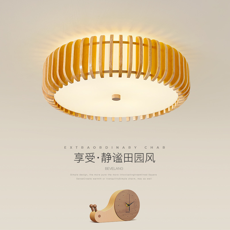 原木卧室吸顶灯现代简约北欧木艺田园风书房间灯中山灯具厂家直销