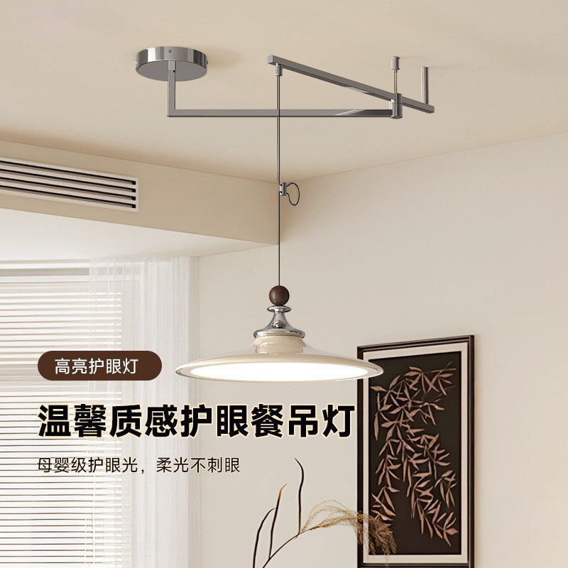 中古风摇臂餐厅吊灯复古极简风餐桌灯吧台饭厅艺术创意氛围感灯饰