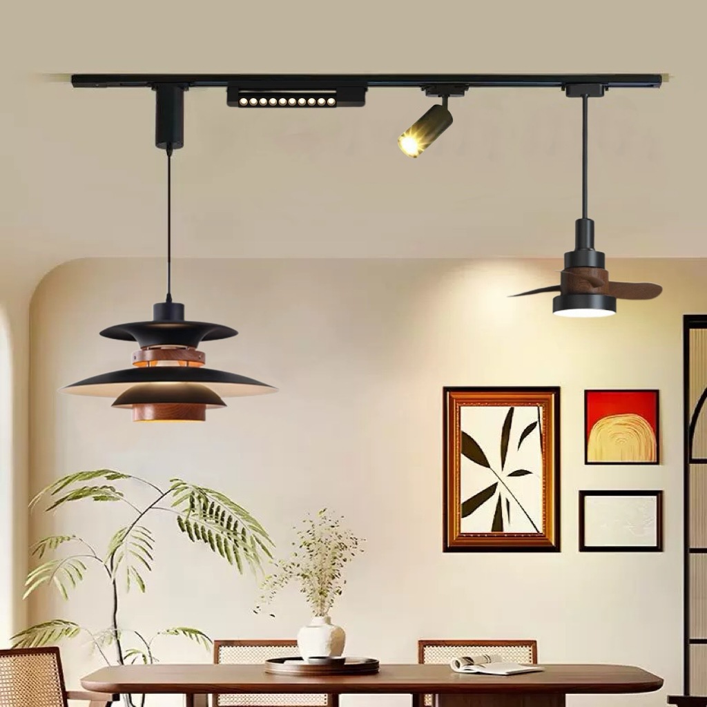 轨道电风扇餐厅吊灯可升降餐厅滑轨飞碟设计师日式复古岛台吧台灯