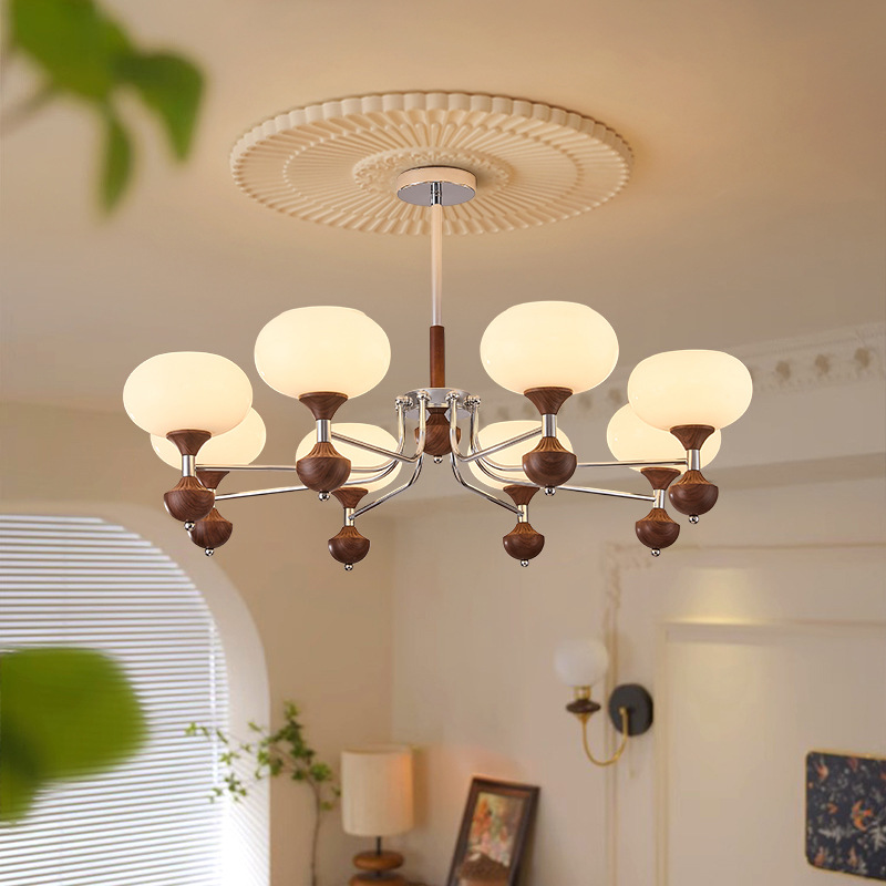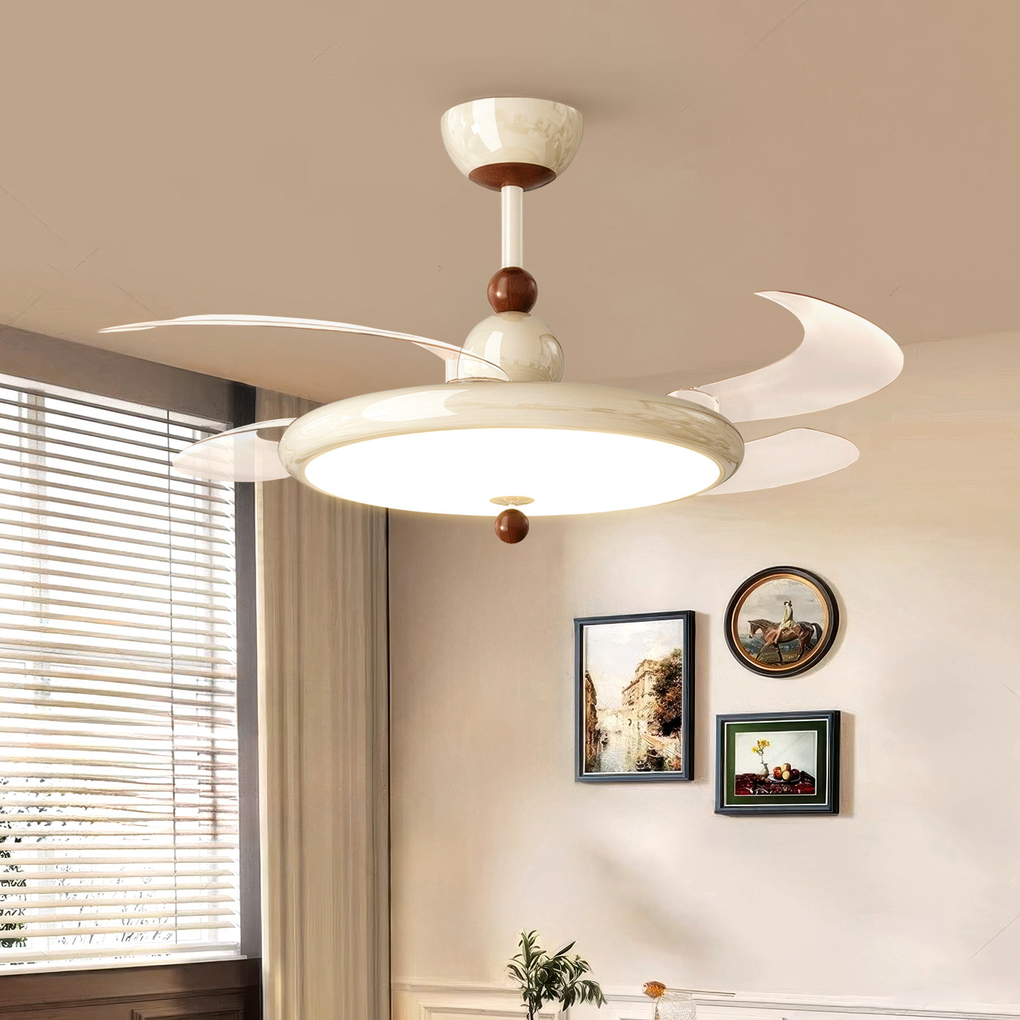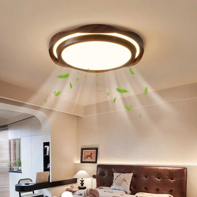 法式中古风卧室吸顶灯复古胡桃木色主卧书房灯客厅餐厅无叶风扇灯