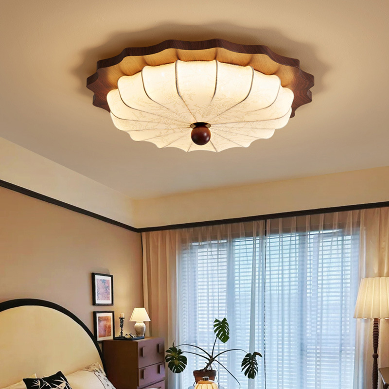 法式中古风卧室吸顶灯复古胡桃木色新中式主卧书房间灯餐厅吸顶灯