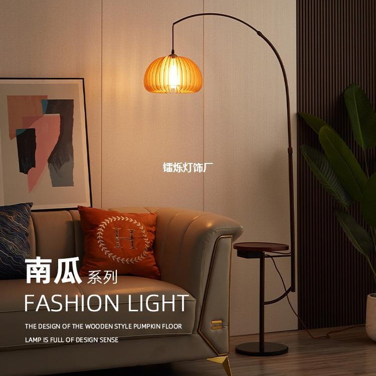 美式复古南瓜置物落地灯2025新款客厅沙发旁氛围灯中古装饰立式灯